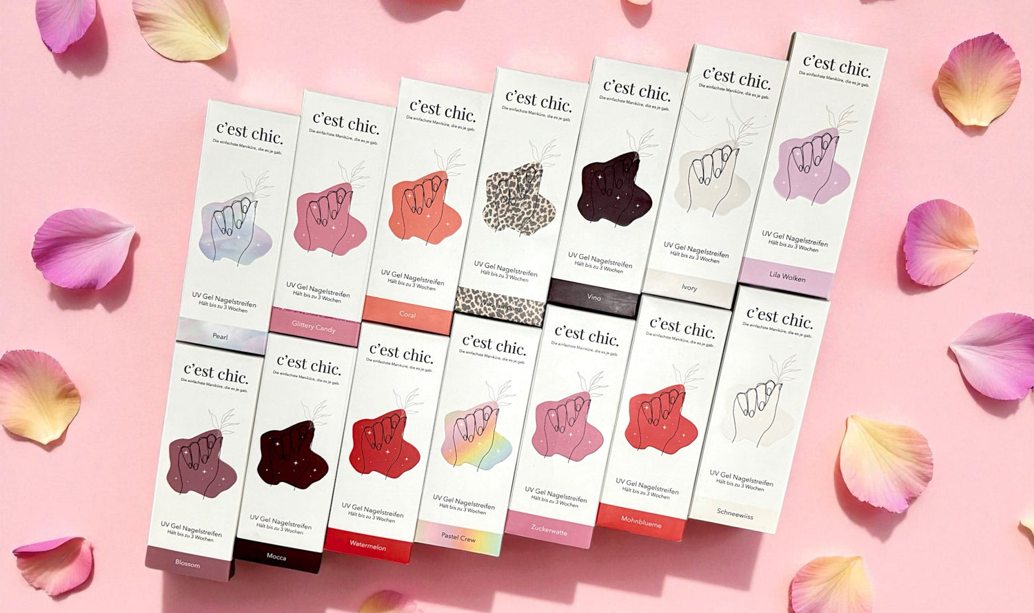 Unsere UV-Gel Nagelstreifen halten in der Regel bis zu 3 Wochen – das hängt natürlich ein bisschen davon ab, wie schnell deine Nägel wachsen und wie stark du sie im Alltag beanspruchst. Bei normaler Beanspruchung kannst du dich aber auf eine langanhaltende, makellose Maniküre freuen.